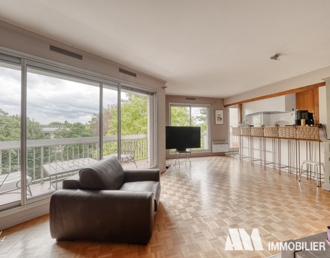 Au calme ! Dans un immeuble en pierre de taille avec ascenseur, appartement en étage élevé de 92,68 m² comprenant : entrée, séjour avec balcon, cuisine, 2 chambres (3 possibles), WC, salle de bain. Rangements et cave. A proximité des écoles, collèges et des commerces. 4 min à pied du RER.